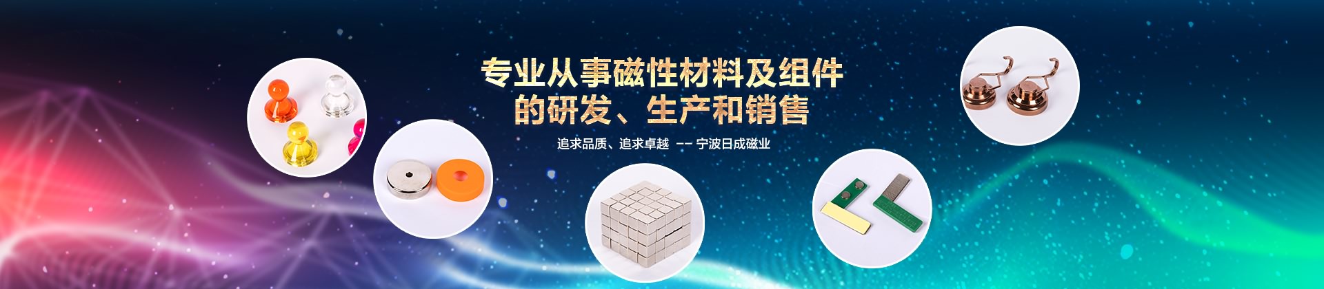 寧波日成磁性材料有限公司是一家專業從事釹鐵硼(NdFeB)永磁材料的研究、生產加工、開發與一體的高科技新型企業。現具備年加工生產800噸高性能高要求釹鐵硼的能力。公司采用世界先進的無氧制作工藝,并依托強大的后道加工能力,主要生產和銷售磁性器件、磁性工具、磁性銘牌、磁性掛鉤、磁性吸丁 ...